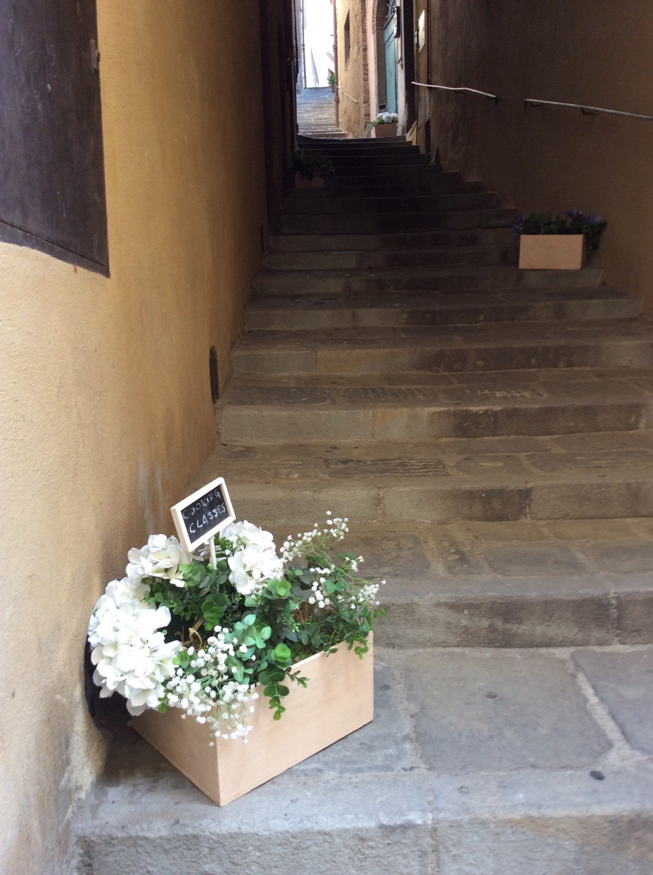 Cortona is beautiful, like stepping back into an old time Italian hill town village but without the poverty, brown shirted fascists and swill tipped on to the streets, but it now has wifi, a few tourists, cafes, and bed and breakfast establishments. The narrow cobblestone streets, the maze of alleys, the stonework and sculpted work in the walls, the stone steps up or down the hill that seem to go on forever maybe to some magical place where my crumbling knees can’t take me. The people here seem friendly as well. Yesterday we had a few arrogant lack of responses to enquires that you don’t usually associate with Italians, not so much here in Cortona, it’s small and personal. The old people ( probably our age ?) are still sitting with their walking sticks in Piaza dela Republica front of Molesini delicatesan watching the young people having a drink at a bar and the children playing, kicking soccer balls against a 1000 year old stone wall, and a classical guitarist playing on the steps of the town hall adds to the atmosphere.