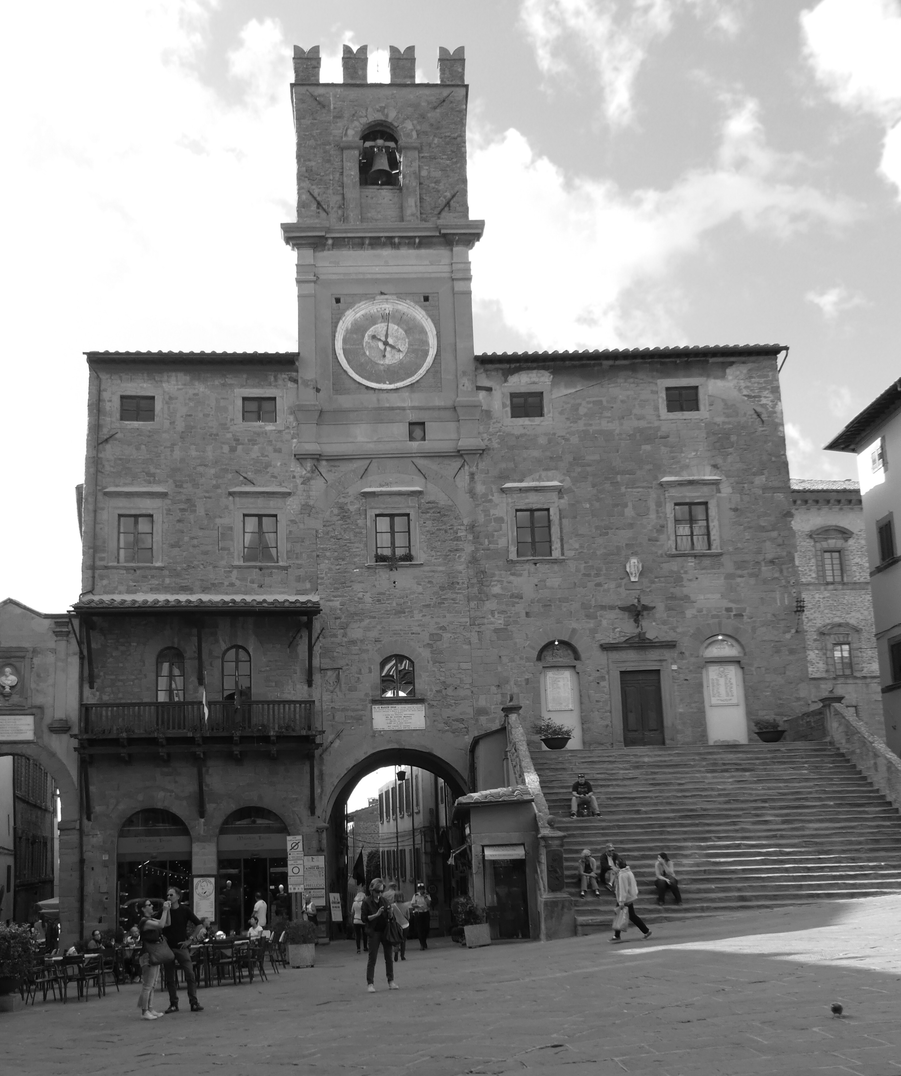 After wandering the streets, I stand and take a photo across the Piazza Del a Republica, to the steps of the Communale, nice in black and white, and as I walk across I hear a familiar voice, Sonya was sitting on the steps by herself, had not been able to get back inside Dolce Maria, John was asleep in the room with the key. I wonder if detente has been broken and the pencil pines are still an issue. I decide not to press this with either of them, as now the issue of the Versace plates has arisen and a certain bet has been lost, apparently not in Il Commando’s favour. Just sayin what I’ve heard, not sure of the truth really but it’s sounds like it’s interesting times ahead.
