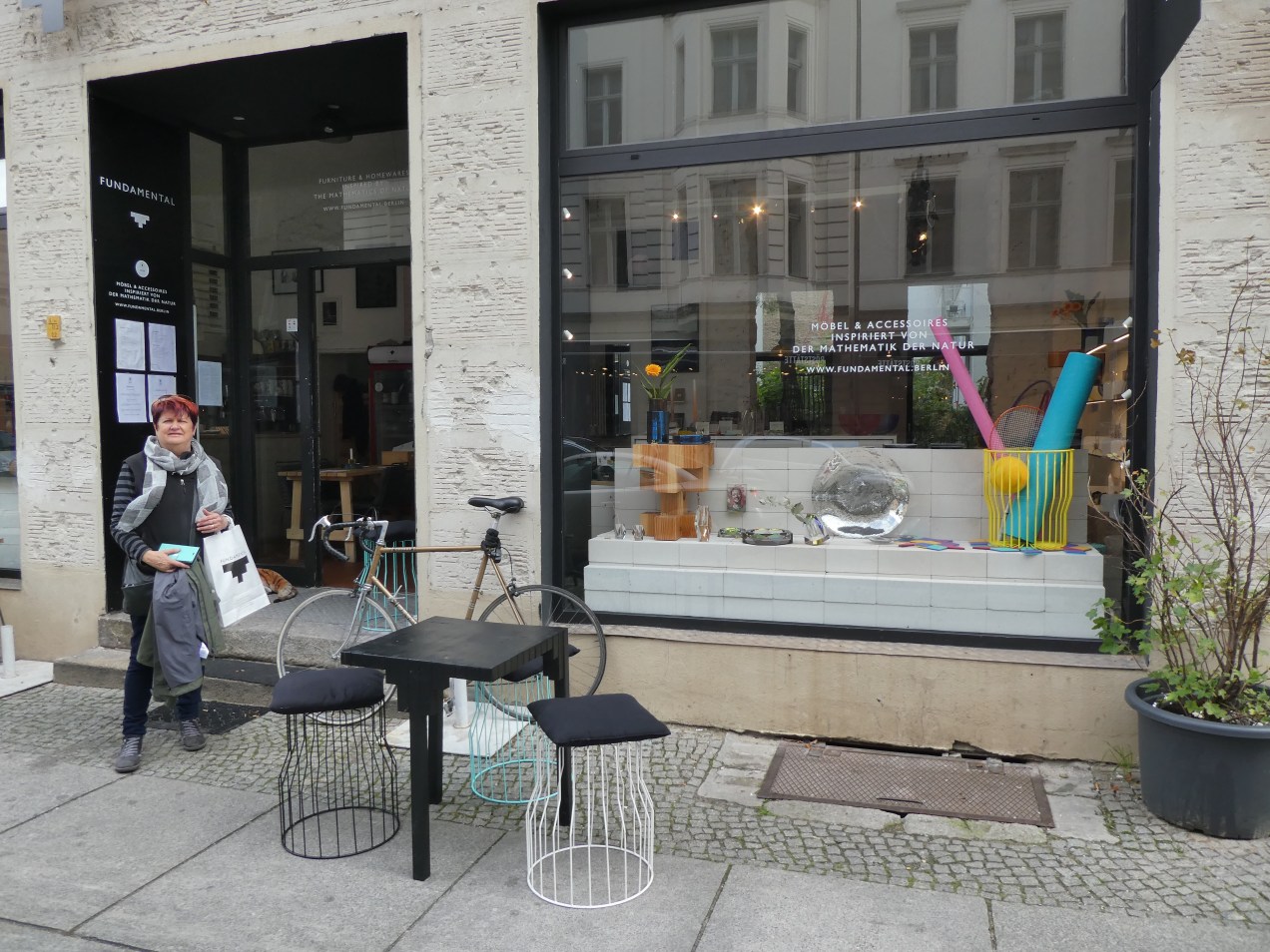 Breakfast in the hotel is pretty good, we top up for the day, tomorrow we’ve opted for the light breakfast. We get away a bit late and the plan is to walk 15 minutes to Tortenstrasse where there is a German Concept shop called “Fundamental” that Genelle has researched, with really different stuff. They also sell a variety of coffee, I try a Galao – a Portuguese brew they call a reverse cappuccino, it’s strong and packed with flavour, and good value for 2.50 Euro. Genelle buys a bit of stuff that nearly gets left in a souvenir place near Checkpoint Charlie later in the day.