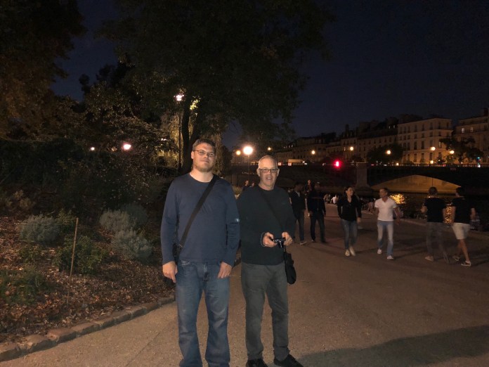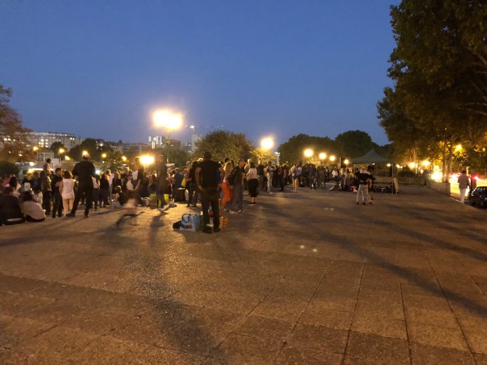 We walk through the streets, eventually trying to see if we can get into the Jardin gardens, but they are locked, so we meander towards the sound of music on the banks of the Seine and in amongst the beautiful gardens on the river we find a big group of people salsa dancing, then not far away another group dancing a mix of stuff, then some old time rock and rollers, all very good dancers, hefty praise from a double left footed non dancing invalid. There is a mix of ages, a mix of skin colours, some can really dance and some try hard, it’s wonderful and it’s very safe, well lit with great music. There’s even a live band playing down right on the Seine waters. Apparently this happens every Saturday night over summer and if I’m right this is the last night of summer, I reckon there would be thousands of people. Fantastic!