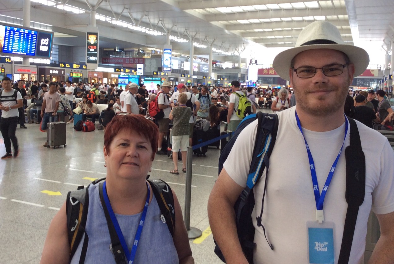 We say our goodbye to John ( or his real name Hu) a 50 something bloke with a 22 year old daughter, he has been a great guide and organiser. I’ll mention that to Trip Advisor. We can board 15 minutes before departure, and the standard bedlam occurs when everyone tries to find their seat and somewhere to stow bags, we opt for the over head racks ( our Kathmandu 70 litre bags are ideal for this sort of travelling). 8 of another group are joking our group of 28 to do the terra cotta warriors at Xian, we’ve met some of them, and in particular 2 women who look a little wild.