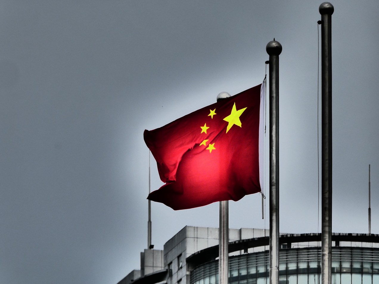 PRC flag off a building near the Hunan Museum