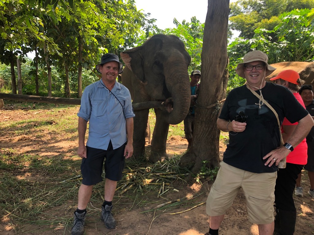 We have to get a narrow boat over the river to were the elephants are, the river is rocky bottom and flowing freely. Fist thing we do is feed 2 elephants with banana’s, then we walk into the jungle with them and their carers, the elephants decide where to go, nobody leads them. its hot and humid, again, but a fantastic day. The elephants return to the river under their own steam to bath and cool down.