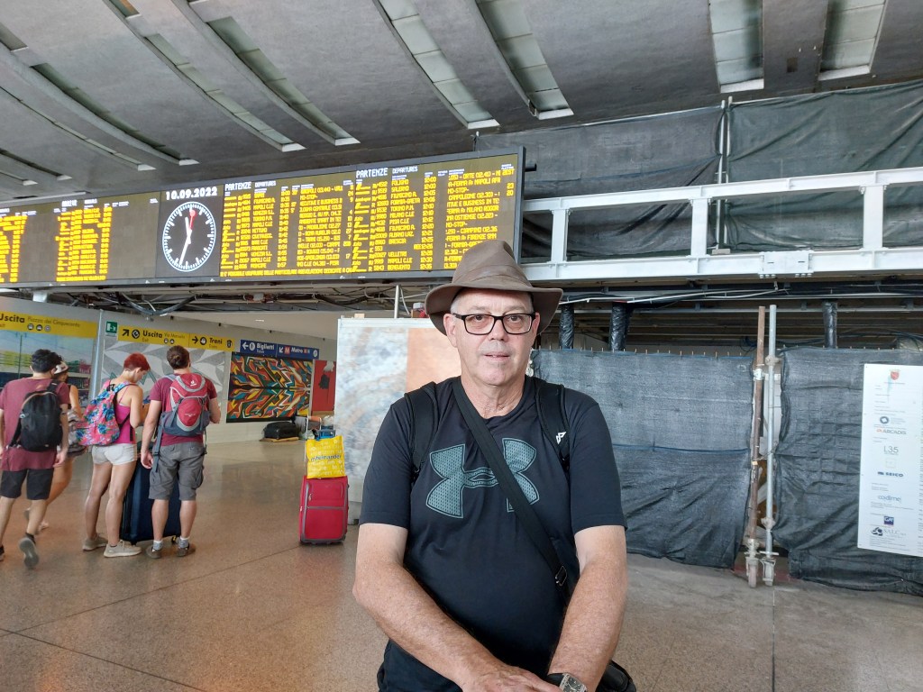 Our train is a Frecciarosso, a bit over an hour to Naples. Train is 9519, the Navigator is impatient, it’s in the board but no Binario (platform) is allocated yet and she wants to be on it ready to go. Patience isn’t one of her strong points, let’s say more.