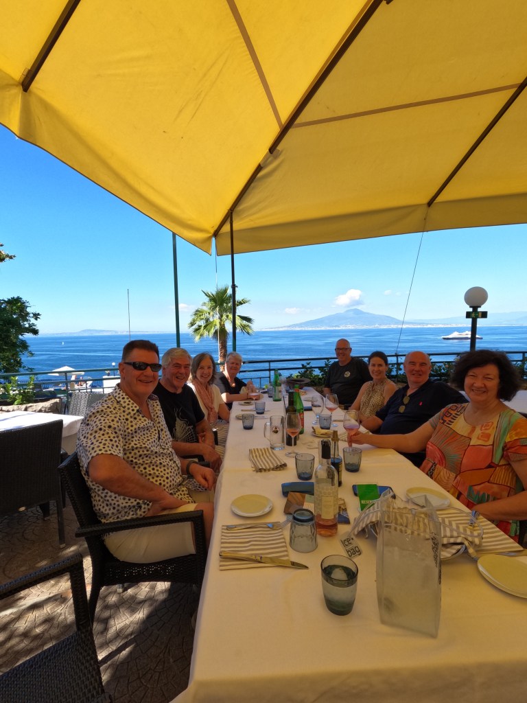Lunch is at the Foreigners Club, it has a sensational view over the Bay of Naples. Eight of us have a very nice lunch and discuss plans for dinner tonight. It’s the men’s turn to cook, so let’s see how this ends up.