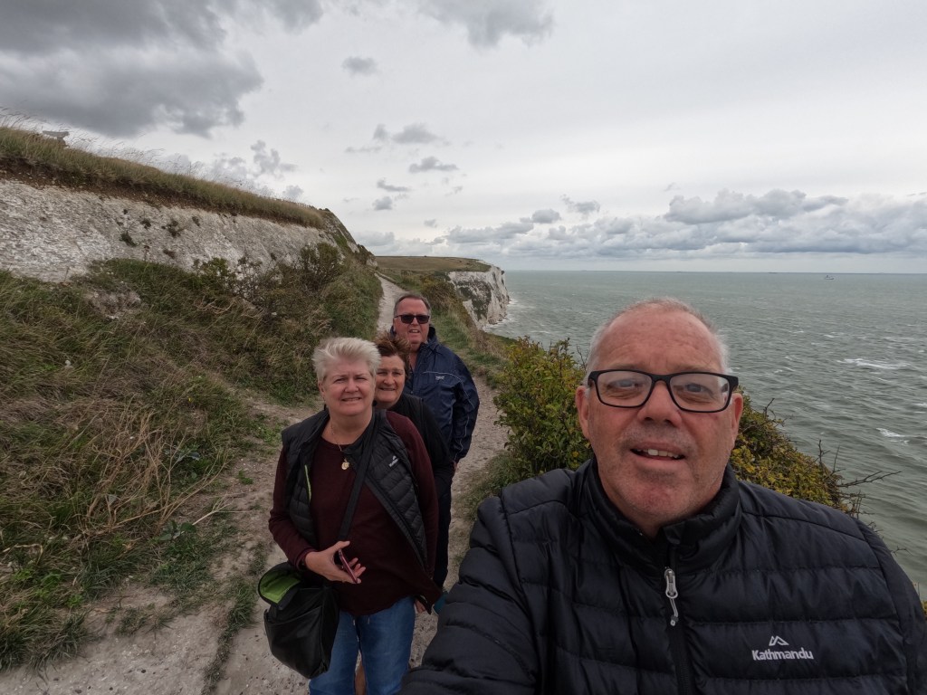 Getting better at the driving and navigating we skop the edges of Canterbury and head to Dover for a look at the White Cliffs of Dover. Dover is the busiest sea passenger terminal in the world, or so the internet says. The ferries are coming in and out, the seas are choppy and sloppy, it blowing a gale, not a day to be on the English Channel. Abover Dover sits the imposing Dover Castle. We have a large lunch/afternoon tea and walk along the cliffs and are nearly blown off the wind is so strong.