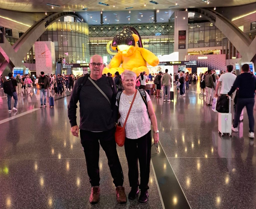 Doha Airport at 4am is nice but mostly not operating. A decent meal to settle a few unsettled bellies is helpful. Otherwise we check out the shops which mostly have stuff that only rich Arabs can afford eg Porsches, Mercedes G Wagons, Paterson Pillipe watches and other expensive.