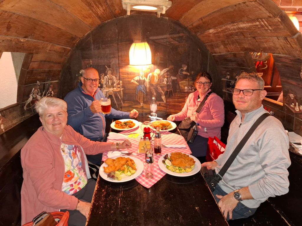 1.30pm we arrive in Vienna, a Tesla taxi to our hotel, then jog up for a booked walking tour. We walk around the old parts of the city, learn about the Queen with 16 children and other notorious Vienese people.