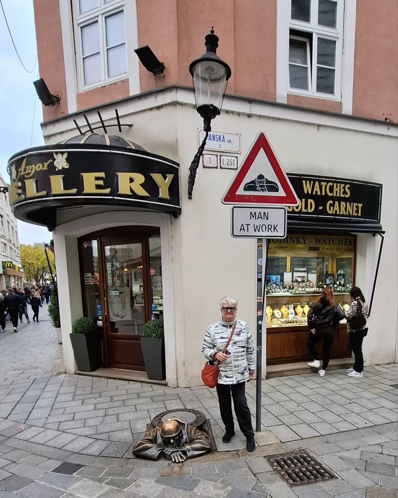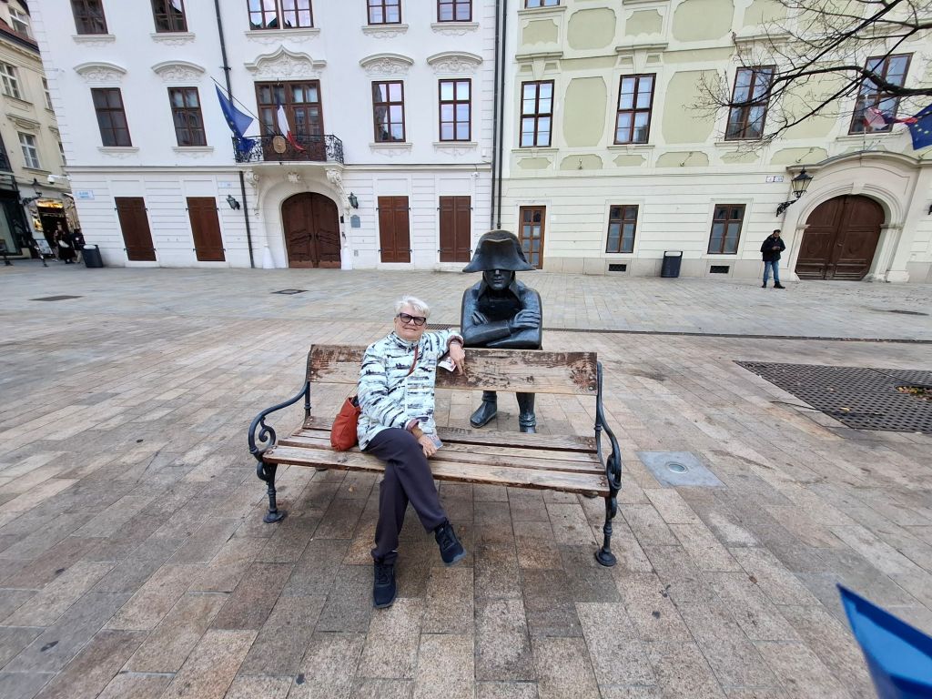 We walk the old town checking off our self guided walking tour list. We walk the modern UFO Bridge and leave some of Tim’s ashes in the Danube in Bratislava. We’ve left his ashes before in Prague ( the Vlatava) in in Vienna in the Danube. In 8 days time he would have been celebrating his 40th birthday.