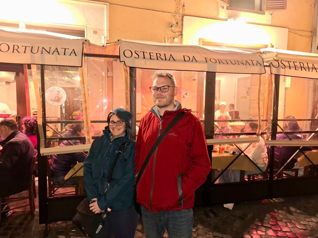 We drop our bags and head to Campo de Fiori for a look and and a snack. It’s stalls are closing down, I’ll come back tomorrow to see if my hat man is here. The Navigator is shoe hunting, so we wander over the Tiber River to The Trastavere area, no luck she has a place in mind but it’s a 20 minute walk so I opt out of walking and wander the streets. Rome is still humming along. She buys 2 pairs of shoes, then dinner is at a pasta speciality restaurant Osteria de Fortunata. The pasta is pretty special, then home for a rest.