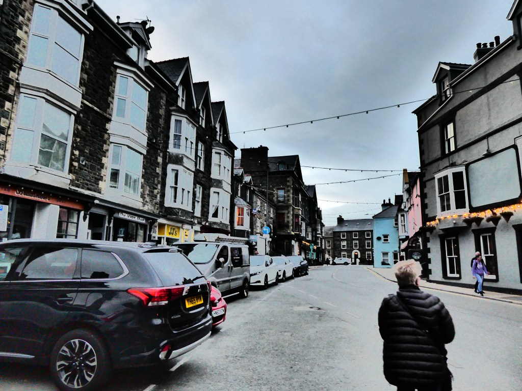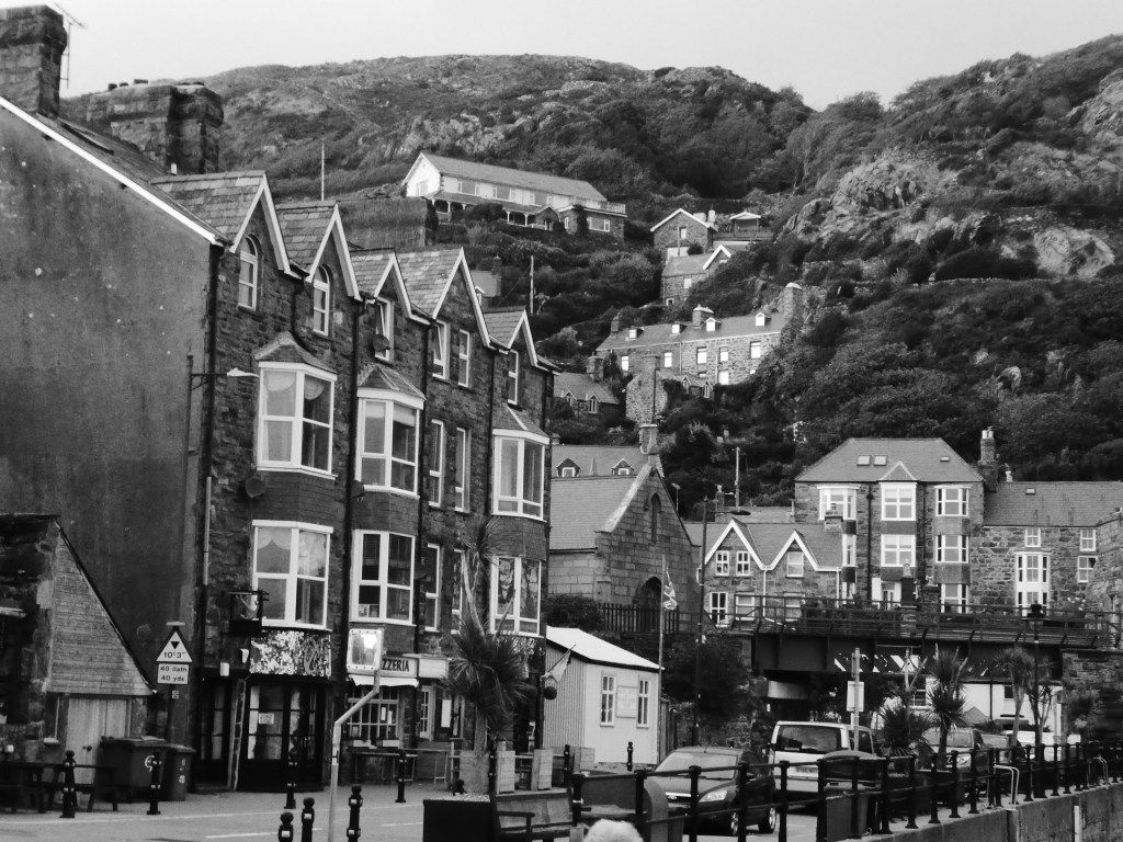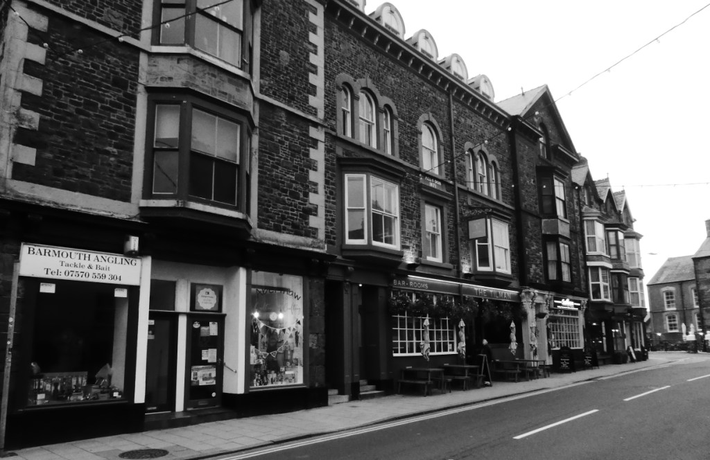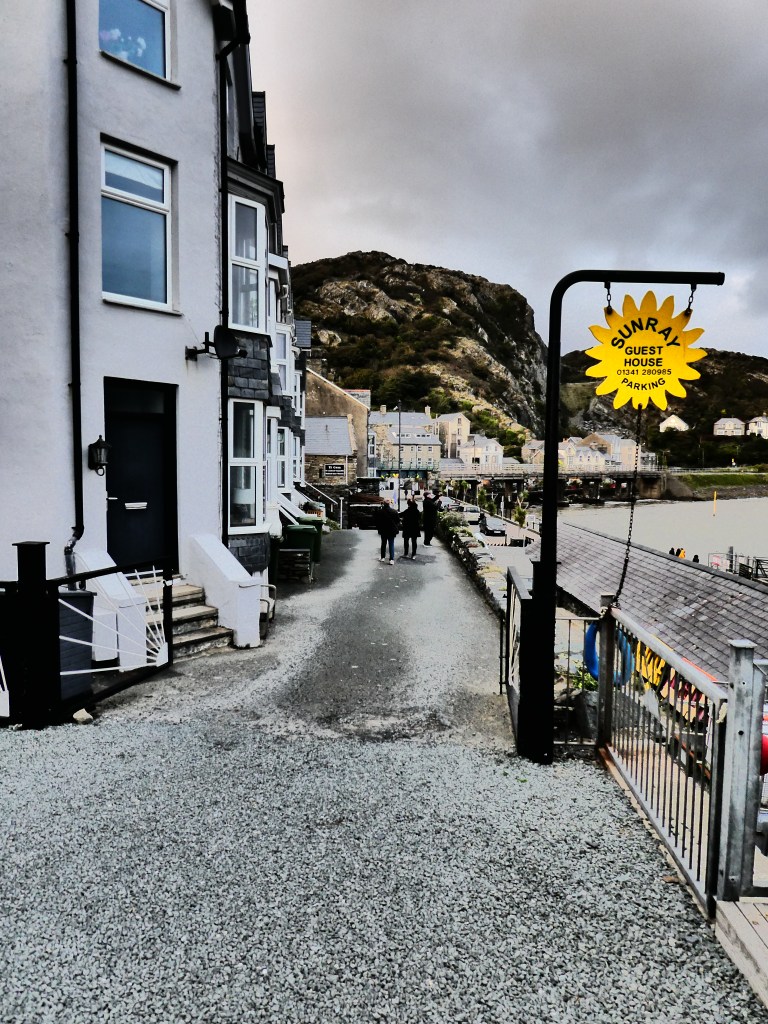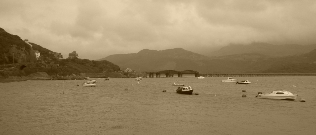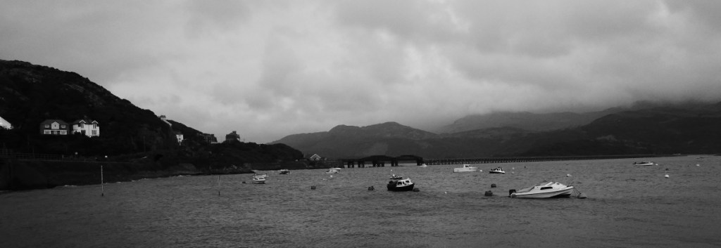 The night in the tiny room of Barmouth’s Sunray Guest House is OK, its tiny but clean with a great view over Afon Mawddach, the bay the town is on. The view first thing this morning is a cloudy grey sky with a howling wind blowing from the sea, boats bobbing furiously in the harbour and nobody on the streets, its quiet.