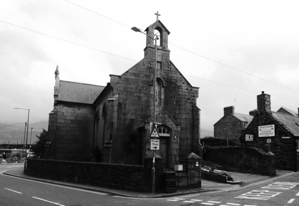 Breakfast is next door in a little cafe built of stone called Davy Jones Locker, there are locals in there who look like fishermen not going to sea today, beanies on heads, a three day growth, thick woolen jumpers and a familiar patter when they talk. The breakfast is cheap, good and the coffee is strong, I have a Flat White which is rare to see on a menu in Wales. It has a “vibe”, I like it.