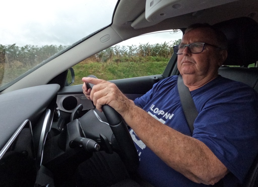 As we’re leaving Davy Jones Locker it starts to rain, serious pissing down rain, blowing sideways with a wind behind it that probably came from Alaska. I’m in the drivers seat today, Port Meirion near Portmadog is the first stop of the day.