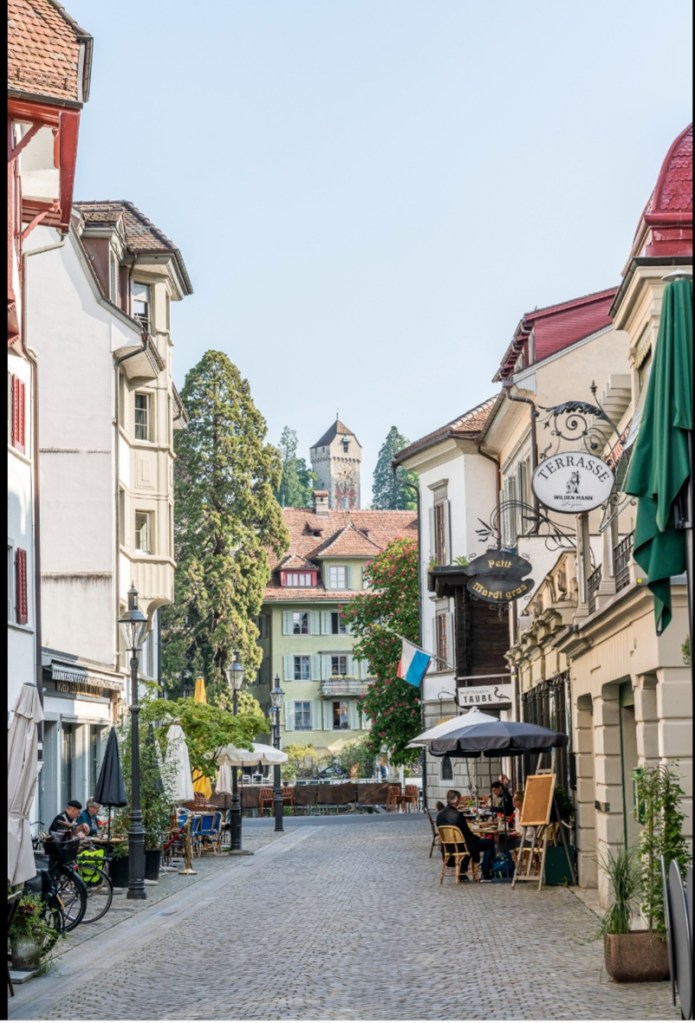 Its clear but threatening rain when we walk to the bridge and over into the town proper. First job is the Victorinox shop to get a new band on The Navigators expensive Victorinox watch she bought in Luzern many years ago. She hardly wears it because the Apple watch has a phone, can’t do without a phone can we? The Victorinox watch people, except for one buggerise around and can’t get the band on, it cost a bit as all Victorinox stuff does so they better have if on right, the old band was perished and was about to give way so it needed to be done.