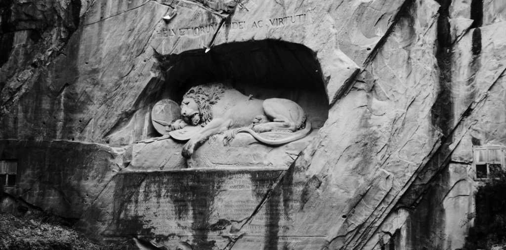 Next stop is through the Luzern shopping centre up to the Lion Monument, its a sculture in the face of a cliff designed by Bertel Thorvaldsen and carved in 1821 by Lukas Ahorn to commemorate the Swiss Guards who were massacred in 1792 during the French Revolution defending the King of France when the revoltionaries stormed the Tuileries Palace in Paris. Its pretty big being 10 metres long and 6 metres high. 760 guards were killed and 350 survived. Its a bit of a political football still.
