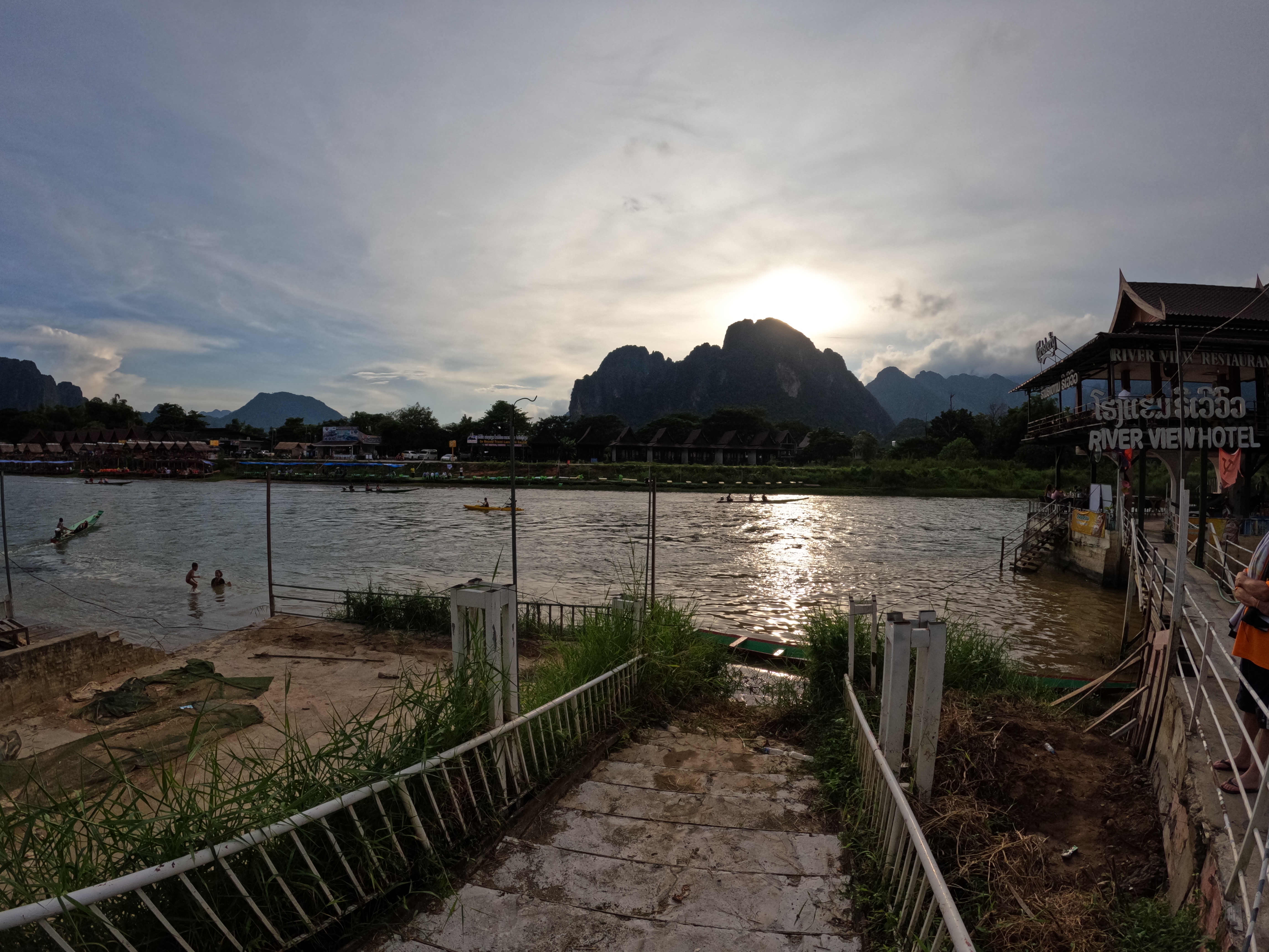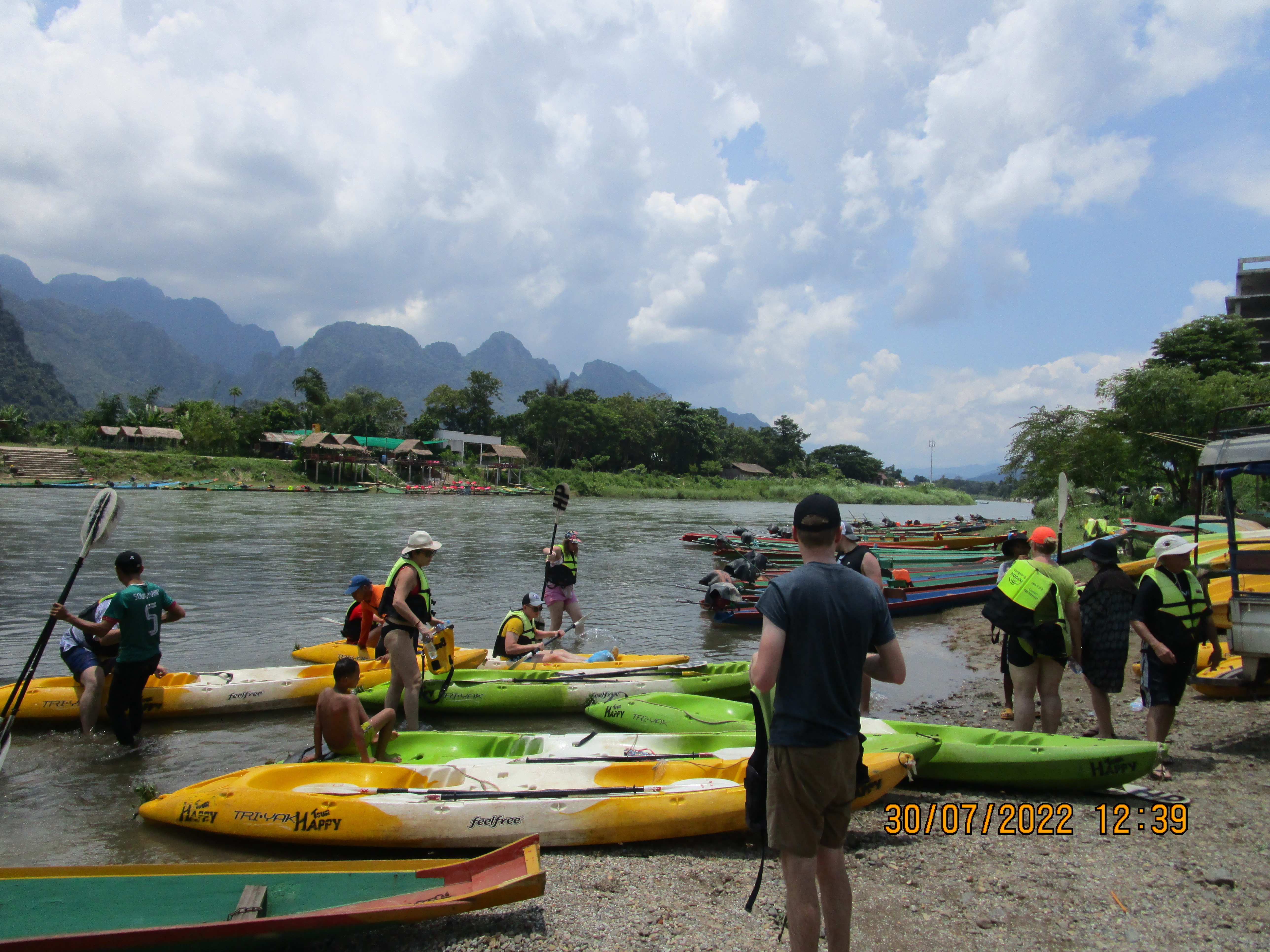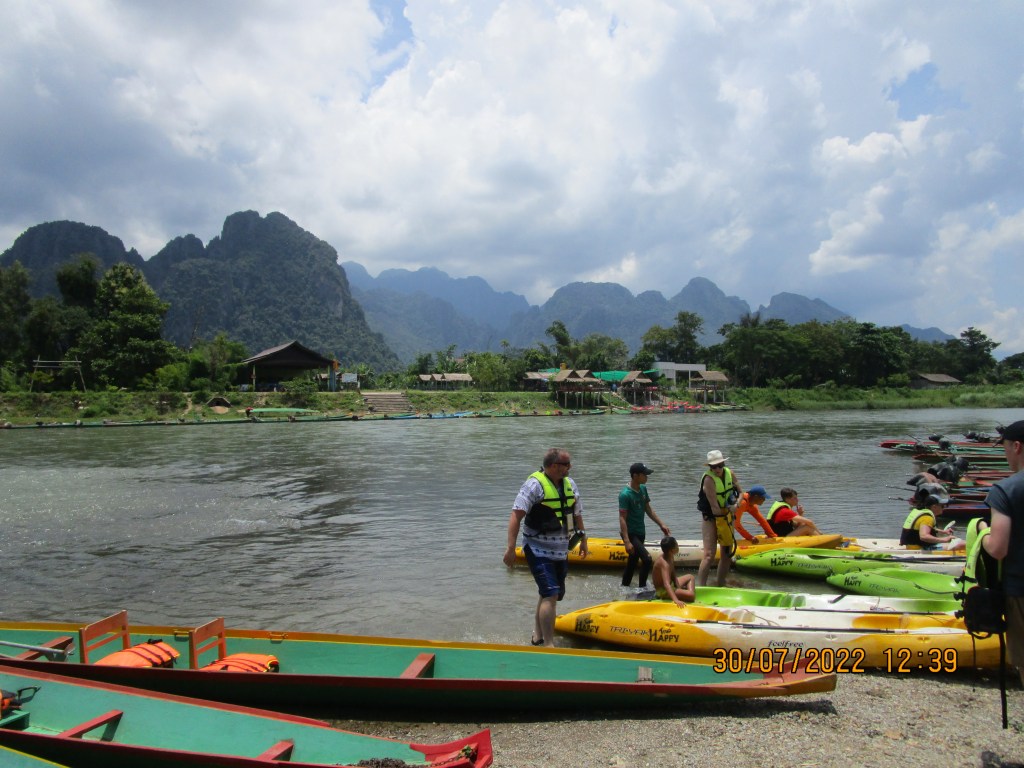 Vang Vien is a former US airforce base in the Vietnam war, I think Mel Gibson was in a movie based on that base called Air….. something. It was also an adventure spot for young Australians and Americans with lots of drugs involved. We hear about the Aussie who drowned after swimming after having a mushrrom milkshake. Americans stupid Aussies stupider. The town is on the Nam Song River, quite a fast flowing river.