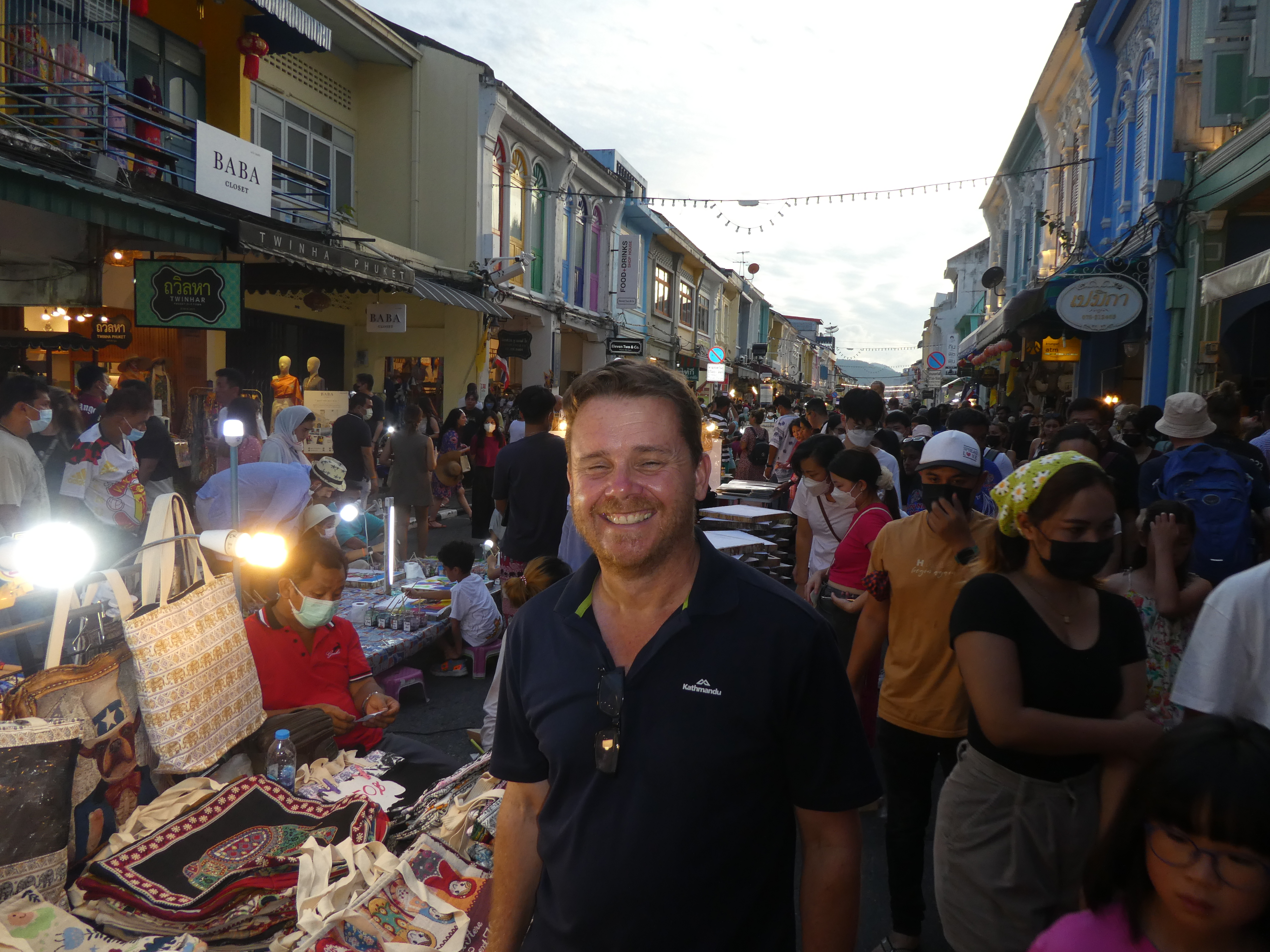 I finish reading “The Nowhere Girl” by Christian White for Book Club. Never heard of him before and its his first book. It’s a cracking read, I think its a well crafted story, a murder/kidnap mystery set between Australia and mid America, lots of tension, suspense and for me horror (the f….ng snakes in it freaked me out). I’d rate it a 4/5. Its so warm I have to have a swim and cool down. There’s no great incentive to leave the pool until we have to, which is at 4pm to go to the Phuket Town Sunday Night Markets, Oz is taking us.